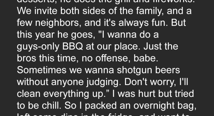 When my husband told me the 4th of July BBQ was going to be a “guys-only” event this year, I tried not to take it personally. But hours later, one unexpected photo turned my entire world and marriage upside down.My name is Lily, I’m 33, and Connor, 35, and I have been married for four years. I thought we were happy, fulfilled, and on the same page until he made a strange request for our annual 4th of July party.