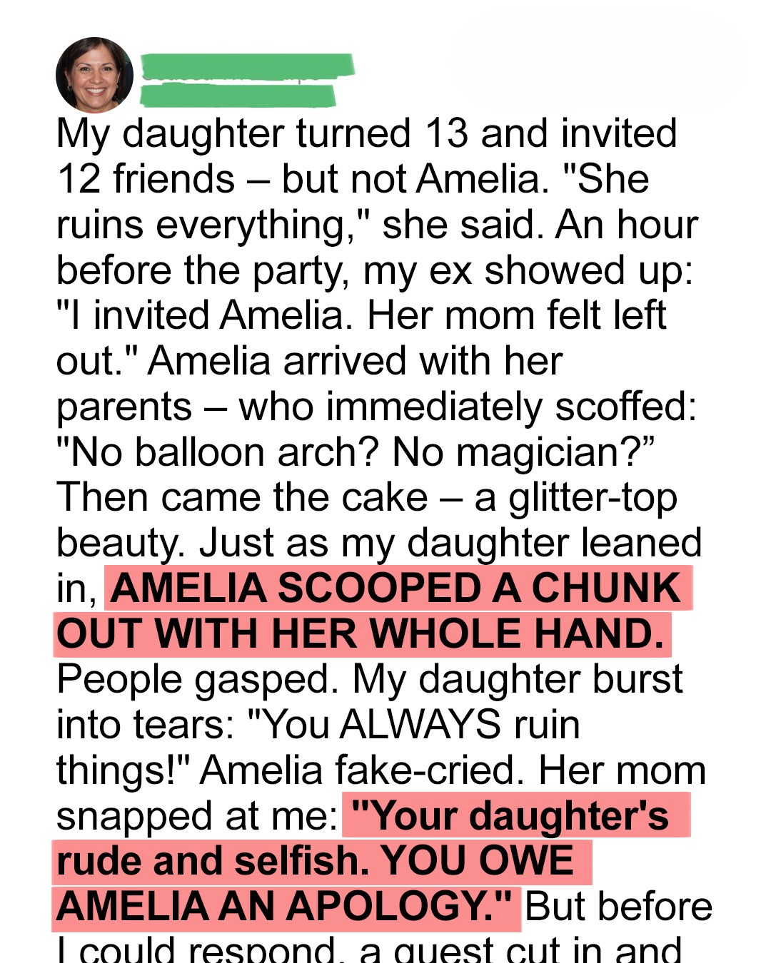 As I tucked Lily into bed that night, she hugged me tight. “Thank you for fixing my birthday, Mom. And thank you for not making me invite Amelia in the first place. I knew she would ruin it.”