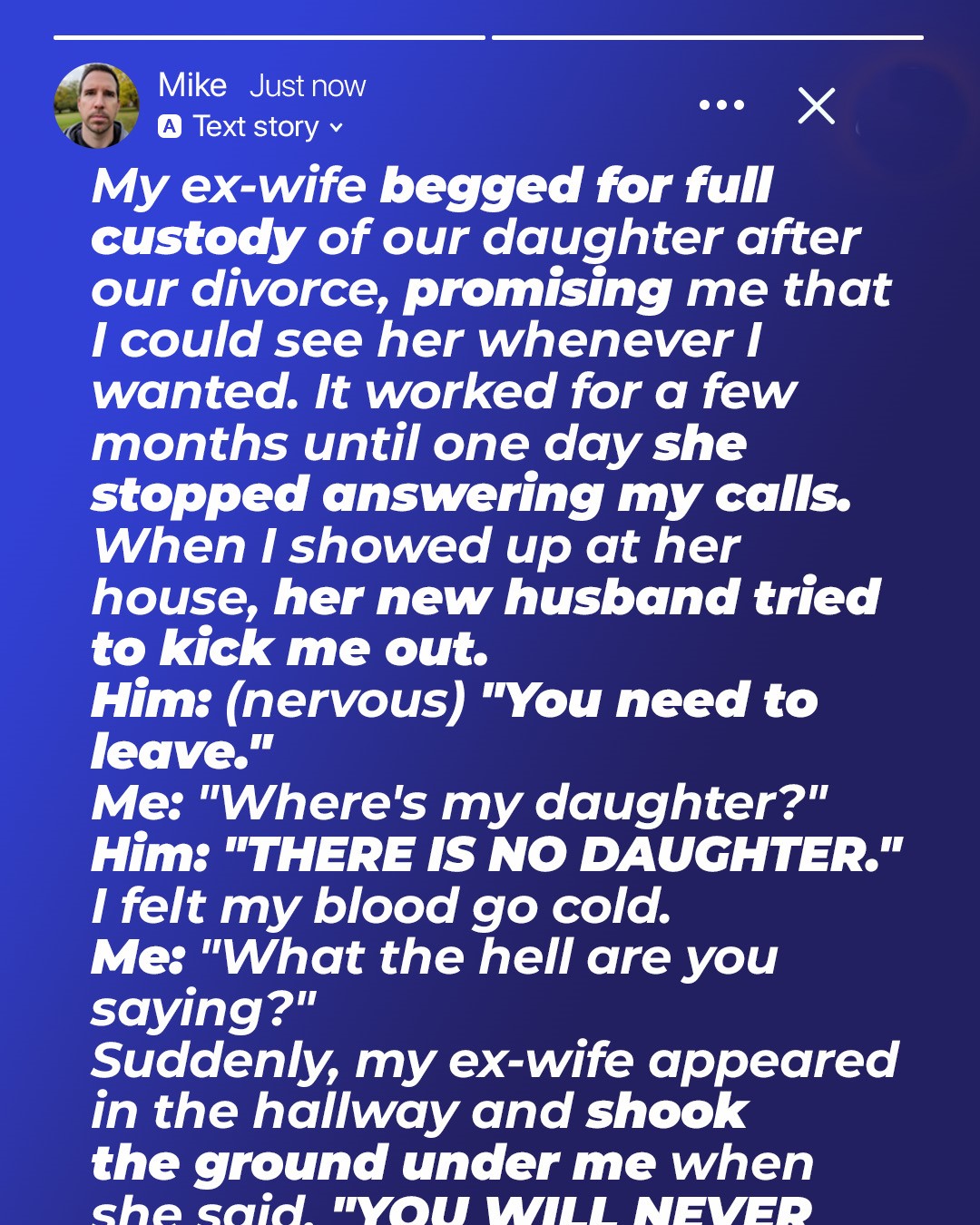 I got out and walked to the door. My heart pounded as I knocked. A moment later, it opened just a crack. But it wasn’t my ex-wife standing there. It was him. Her new husband.