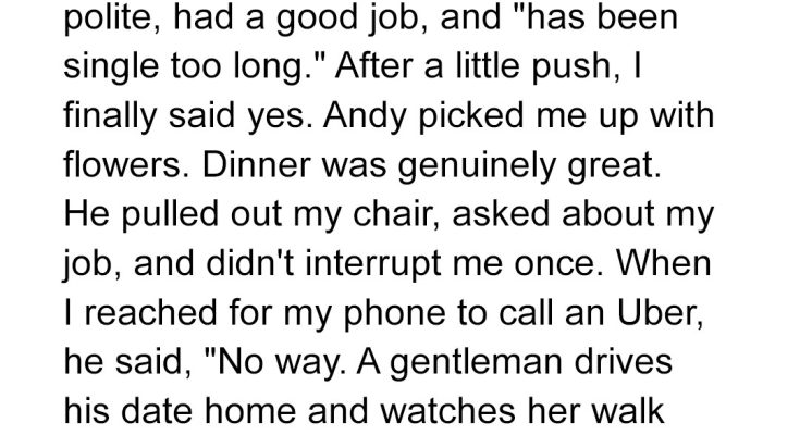 Dinner was even better than I’d expected. He held doors, pulled out my chair, and asked about my job like he cared about the answer.