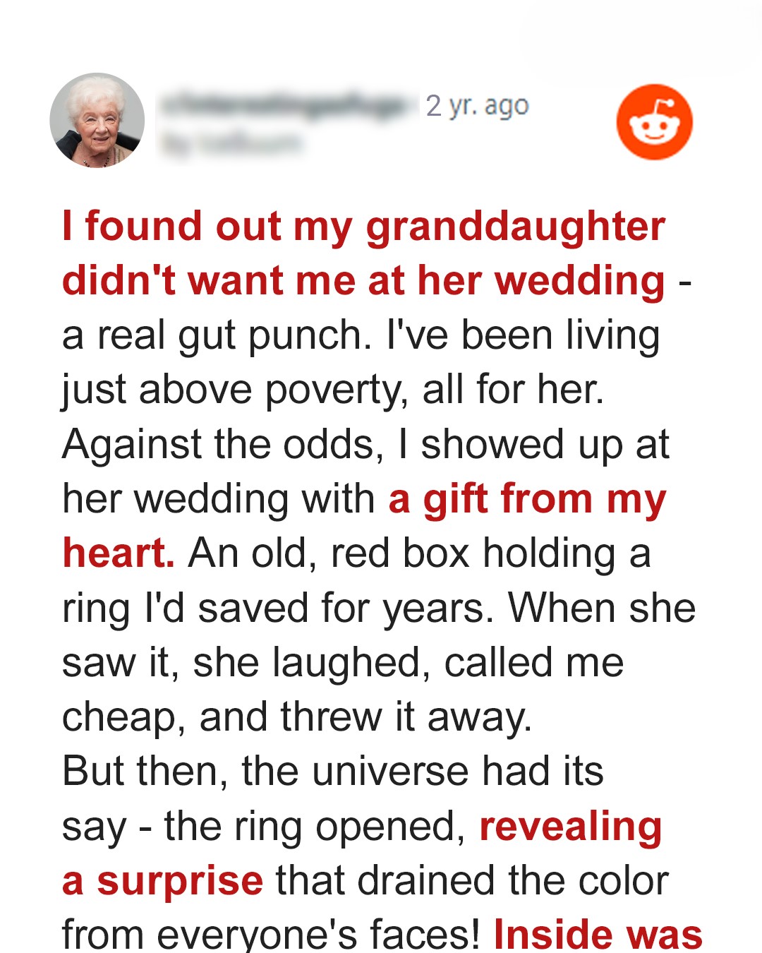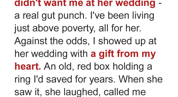 Emma was dancing with her groom when the hotel manager told her someone was asking for her outside. It was her uninvited grandmother, Martha, with a wedding present Emma didn’t want. But the tiny box opened when she threw it, uncovering something that made her sneer.Emma and her new husband, Dylan, swayed to the music of their first dance, enjoying the peace and the love. Their moment was perfect, except for the fact that Emma’s parents weren’t here to see her so happy.A hesitant cough interrupted their bubble, and Emma opened her eyes to see Mr. Scotliff, the manager of the hotel where they held their reception.
