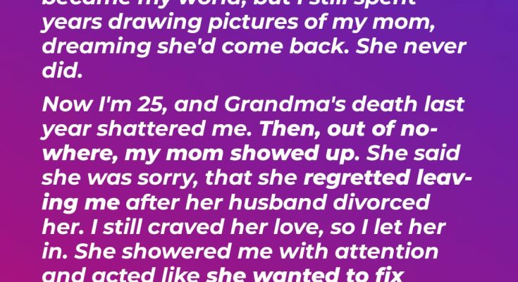 My heart screamed no, but some small part of me, that little girl who’d spent years drawing pictures of her absent mother, whispered yes. I stepped aside.