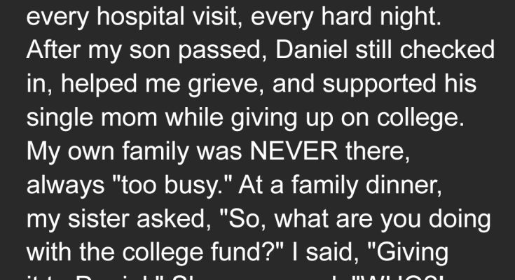 As we finished unpacking, his roommate arrived, a cheerful kid from the next town over. I watched Daniel introduce himself, the same gentle kindness in his voice that had comforted my dying son.