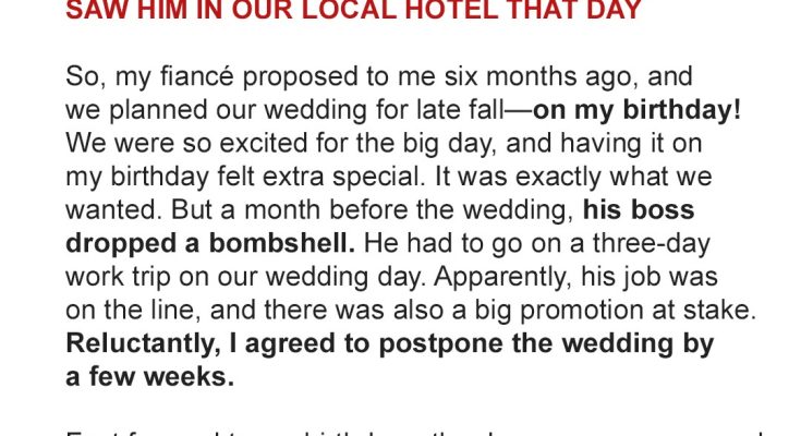 But what could I do? Reluctantly, I agreed to postpone the wedding for a few weeks. I tried to put on a brave face, telling myself that it was just a small delay along our journey.