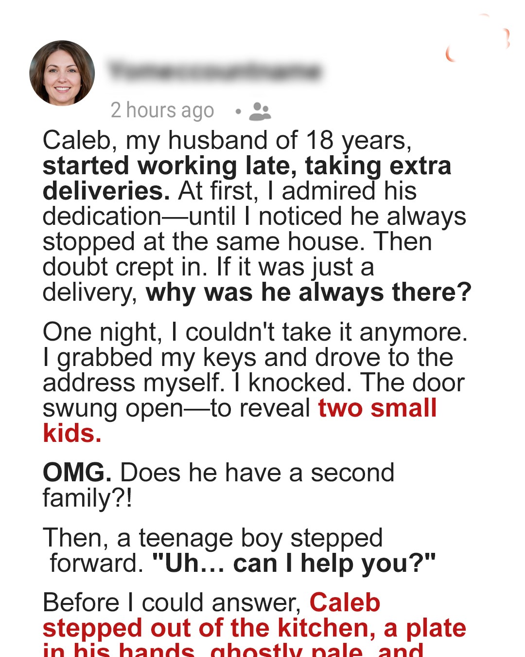 Eighteen years of marriage. Eighteen years of trust, laughter, struggles, and love. I had always believed that Caleb and I were solid. We had built a home together, raised our kids, and weathered life’s storms.