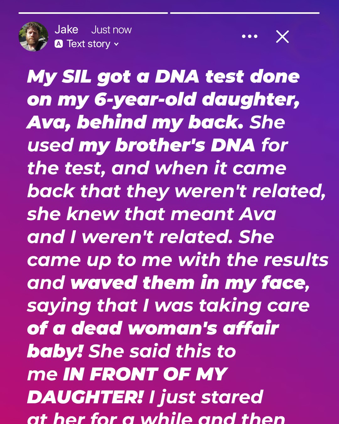 “You’re raising a dead woman’s affair baby.” My sister-in-law shoved a DNA test in my face. She had gone behind my back, stolen my daughter’s DNA, and run a test without my consent. But this wasn’t just about my daughter. It was about a cruel lie my brother had fed his fiancée.Have you ever had one of those moments where you just sit there, staring, because what just happened is so messed up you can’t even react? That was me, standing in my own damn living room while my sister-in-law waved a DNA test in my face like she’d just cracked a murder case.