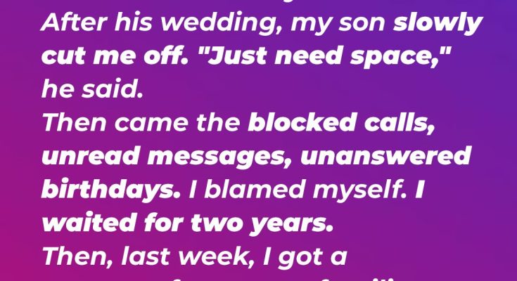 They say newlyweds need space. I gave it to my son, even when it meant celebrating birthdays and Christmases alone. Two years later, I learned the chilling truth that his wife hadn’t just needed distance, she needed me out of his life… forever.I used to think love was enough. The kind that builds in your bones, not the kind you say out loud. The kind that shows up in lunchboxes packed at 5 a.m., knees iced after football games, and waiting up when your child misses curfew. I thought if I loved my son well enough, he’d never forget where he came from.Turns out, love doesn’t protect you from being erased…