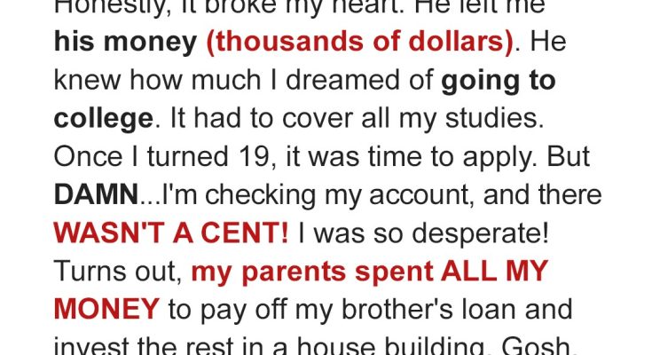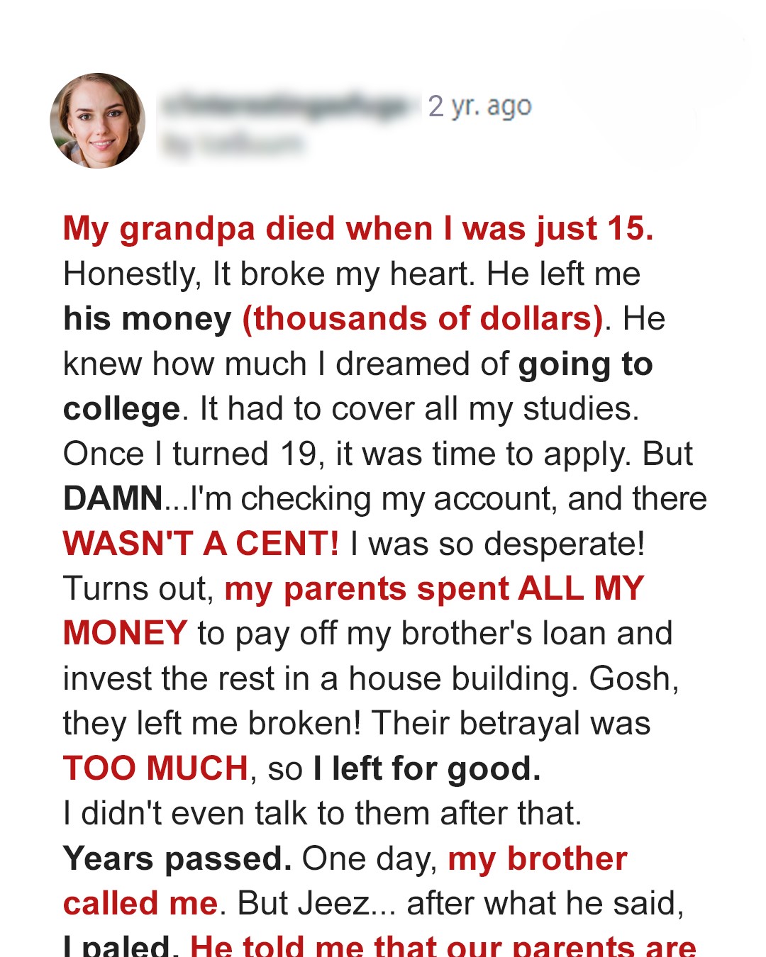 My Parents Spent All My College Fund Inheritance from Grandpa, but Karma Struck Back