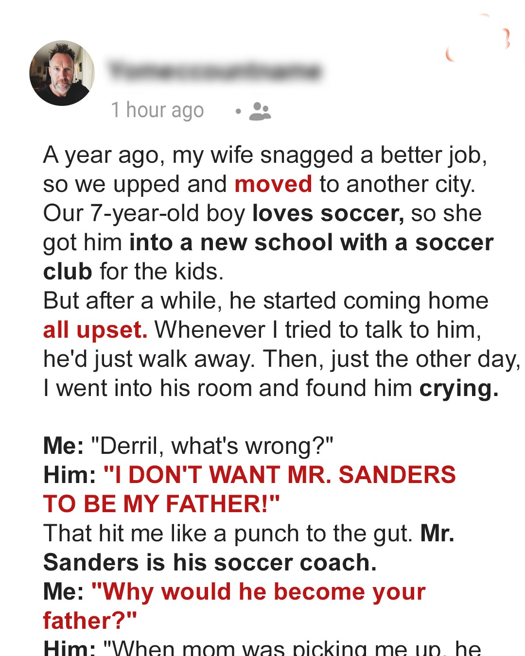 When Daniel, Sarah, and their son, Derril, move to a new city, they take some time to readjust to the new place. One positive about the move is that Derril’s school focuses on soccer, his favorite sport. Soon after, things get strange when the little boy notices his soccer coach hugging his mom…Recently, our lives changed when my wife, Sarah, landed a promising new job. It meant uprooting our lives and moving to a new city, but we were optimistic about the future.