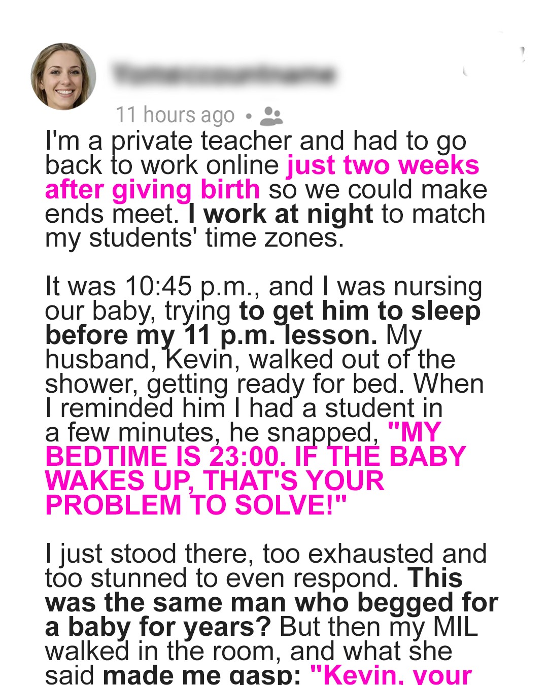 My Husband Snapped at Me, ‘My Bedtime Is 11 PM & If the Baby Wakes Up, That’s Your Problem’—What His Mother Did Next Made Me Gasp