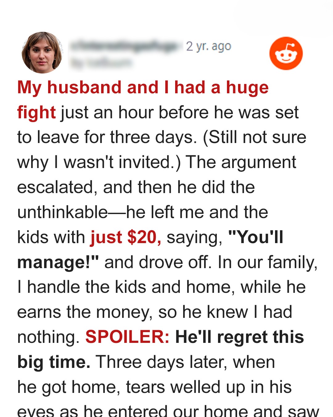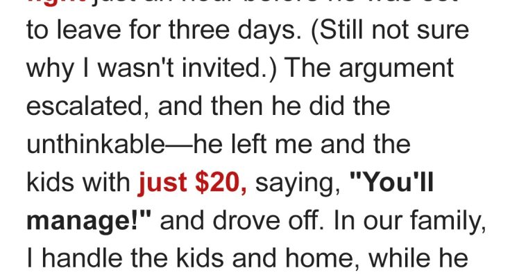 Husband Went to Friend’s Wedding for 3 Days, Leaving Me and Kids $20 — He Fell to His Knees after What He Saw upon Returning
