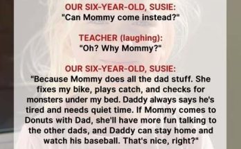 “Can Mommy come to Donuts with Dad instead? She does all the dad stuff anyway.”The words sliced through me. A casual comment from a six-year-old, relayed by a sympathetic teacher, …