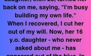 Years ago, I was diagnosed with a serious sickness. My 23-year-old only daughter pulled away, stating, “I’m busy building my own life.” When I recovered, I removed her from my …