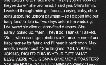 When my stepsister asked me to make six custom bridesmaid dresses, I said yes—hoping it might help us bond. I spent $400 from our baby fund on the materials. But …